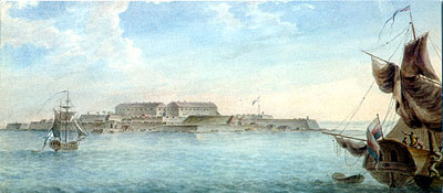 Om eftermiddagen gick jag till Fru Wiberg för att träffa Frihn, man de hade allesammans gjort en liten promenad till Brunnshagen ½ fväg från staden. Jag gick således att se mig om upp en väderkvarn belägen på ett högt berg varifrån man översåg staden, som är småtäck, och Svartholms fästning, 1 mil därifrån ut i havet syntes. Därefter återgick till Fru Wiberg där societeten var samlad, souperade och förde Frihn hem till vårt logi. Seth hade idag rätt roligt med Per Gustaf.
